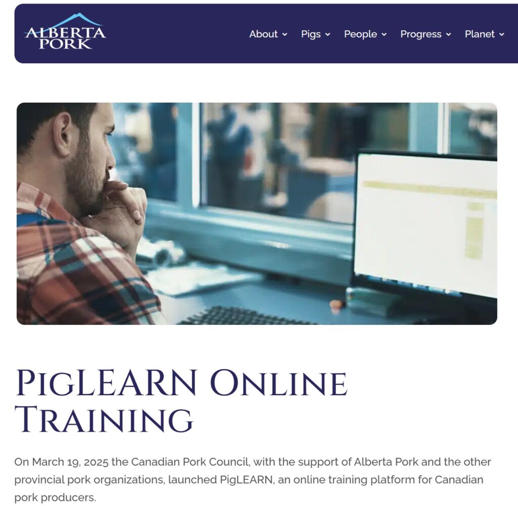 Although the idea of a PigLEARN training platform was floating around since the beginning of the project, it wasn’t decided on until 2022. CPC partnered with Enable Education from Milton, Ontario to develop and host the platform, using training videos previously developed collaboratively with Prairie Swine Centre (PSC), Centre de développement du porc du Québec (CDPQ), and Équipe québécoise de santé porcine (EQSP). The contributions of PSC, CDPQ and EQSP were foundational to developing the platform, which was officially launched in March 2025.
